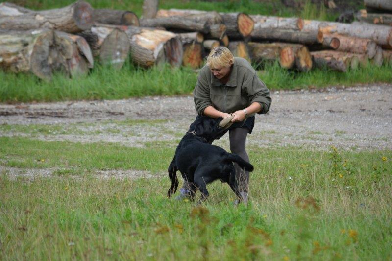 8. Her skulle der så afgives 4 skud fordelt på 2 forskellige øvelser: den ene skulle Charlie være løs og vi skulle lege med en klud, øvelse nr. 2 skulle Jeg står stille med Charlie i snor og der skulle så komme de sidste 2 skud. Det er bare en øvelse han er ganske stabil i, det eneste han dog mangler er fuglen der falder ned.